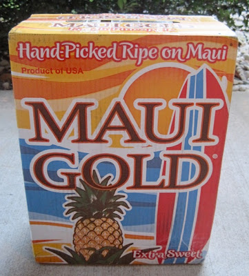 Because my wonderful husband came home with a box of Maui Gold pineapples for me on Friday! And seriously, you could smell them perfectly through all that box and newspaper and packing tape. Just like a pineapple candle, only better. Much better. In fact, I couldn't keep my nose off the box.